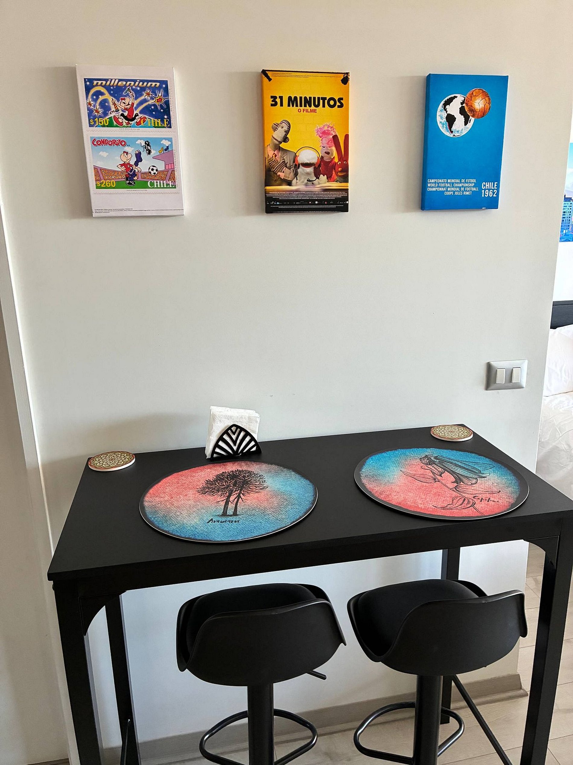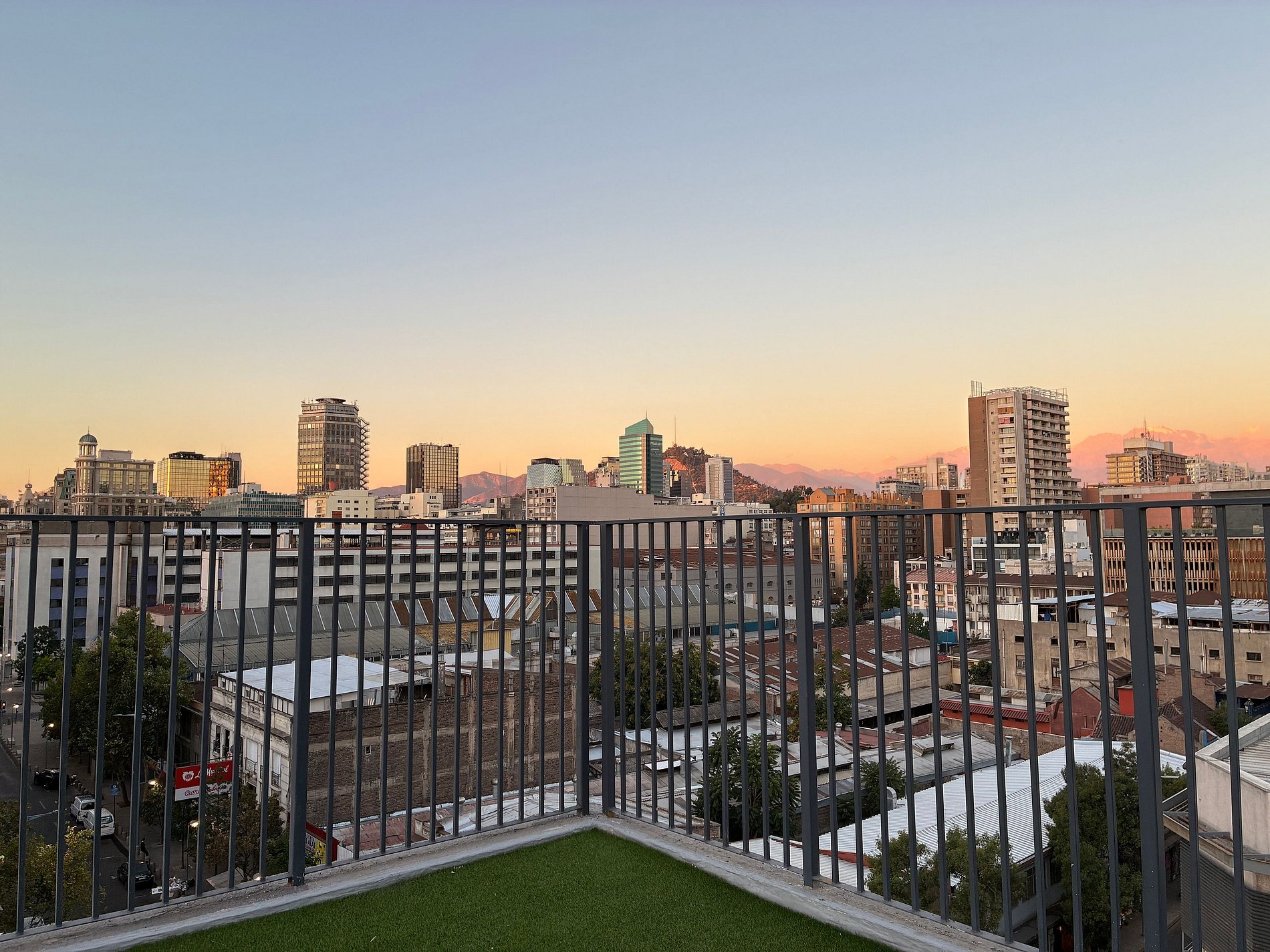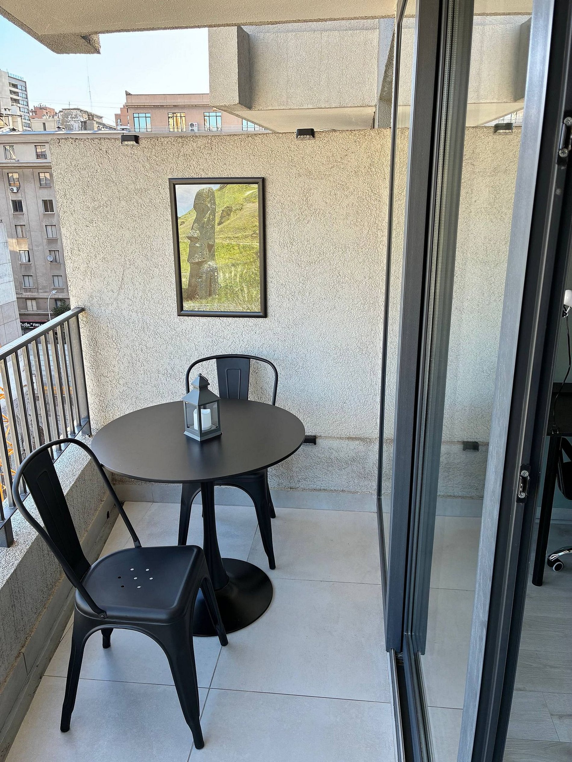 Estudio moderno con terraza privada en Santiago Centro, cerca de La Moneda y Paseo Bulnes. Ideal para trabajar y descansar: cama king, escritorio cómodo, Wi-Fi rápido, Smart TV 50” y A/C frío-calor. Incluye sofá cama para 3er huésped y mesa alta para 2. Edificio residencial con conserjería. Importante: Estacionamiento de visitas en edificio y estacionamiento pago por día cercano (aprox. 120 m); horario de estacionamiento 06:30–00:00.