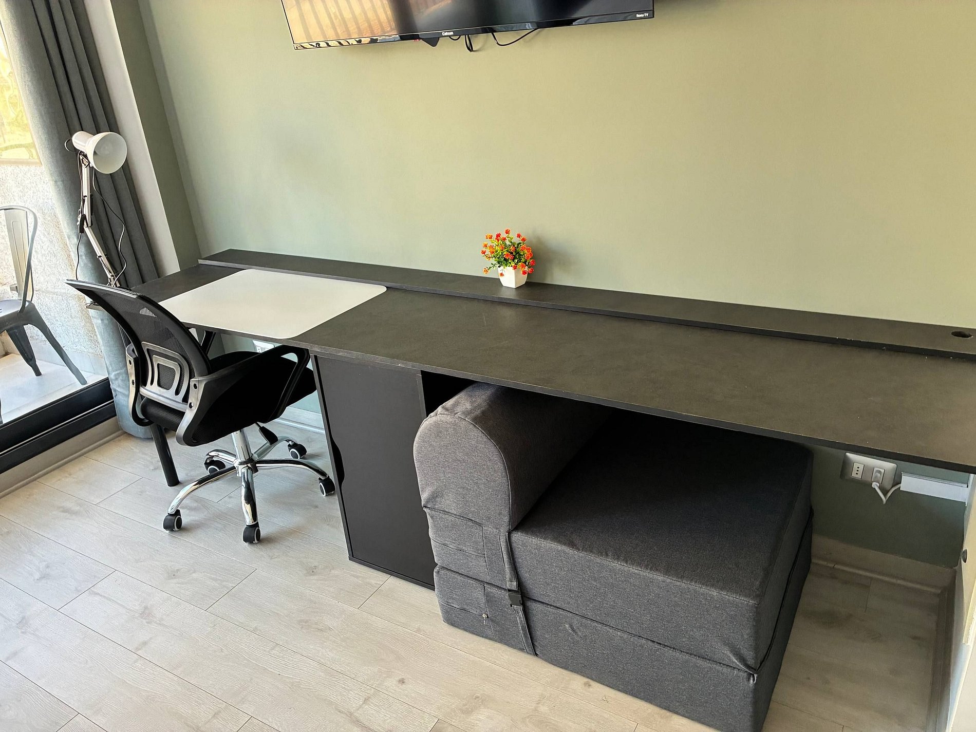 Vas a estar en un estudio moderno pensado para estadías en ciudad: cómodo para descansar y muy práctico para trabajar. La terraza privada es tu “extra” para tomar un café, leer o simplemente desconectar.